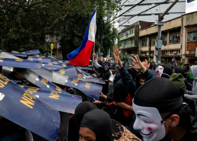 Dans un climat de tension croissante, des milliers de Philippins ont manifesté le 21...
